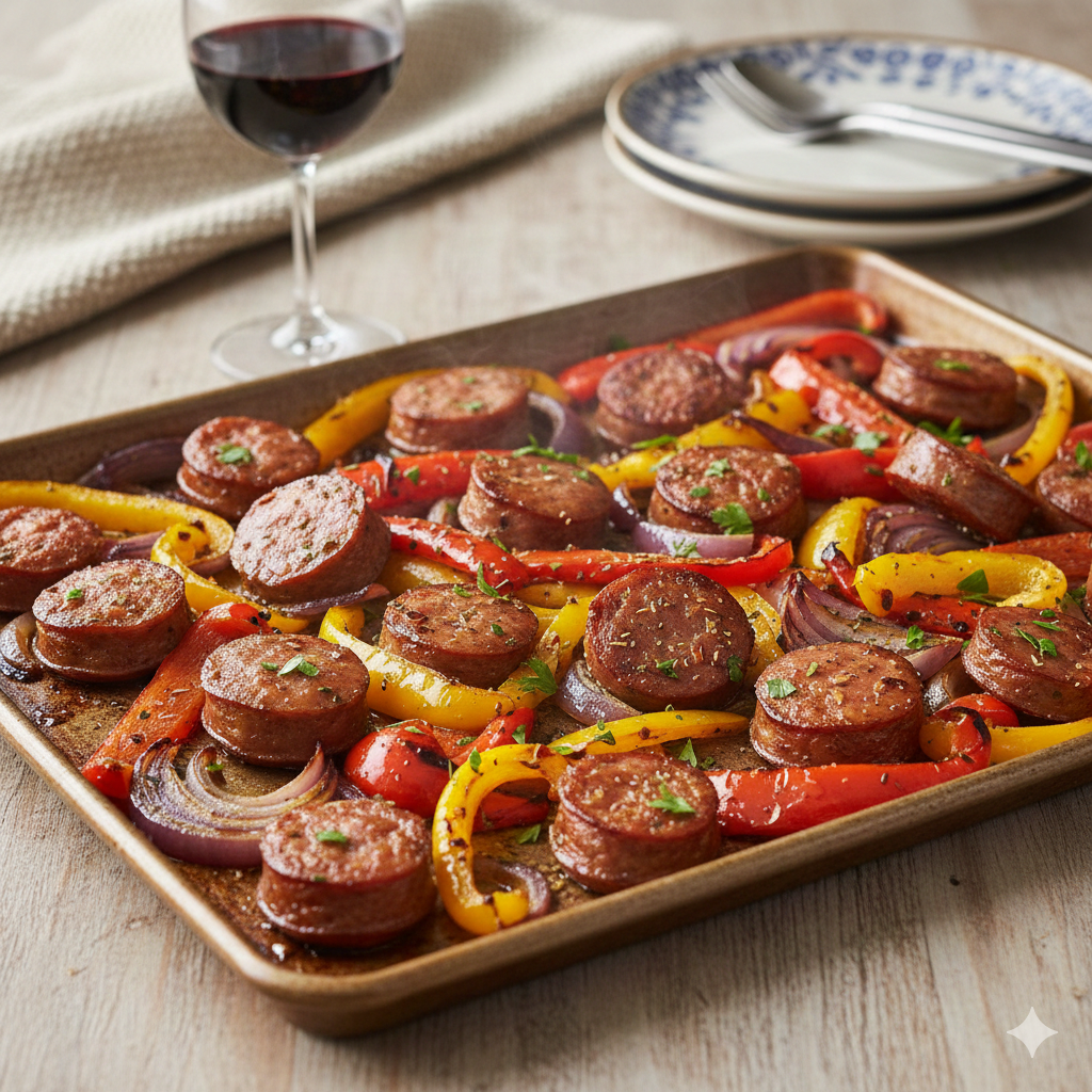 • The Sheet-Pan Stir Fry: Use Kielbasa or Andouille sausage, add snap peas and broccoli, and swap the Italian seasoning for a ginger-soy glaze.