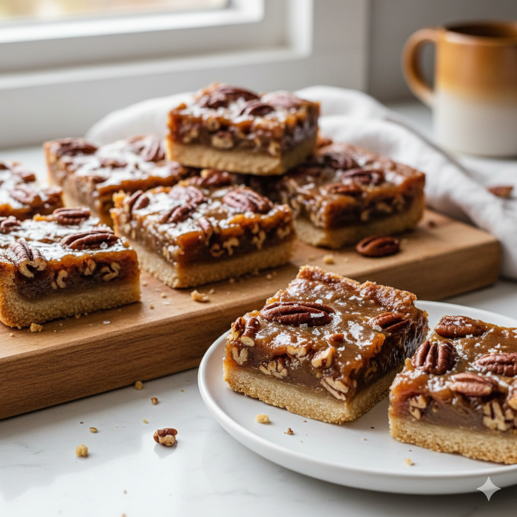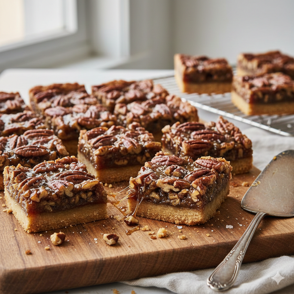 Q: Can I use whole pecans instead of chopped? A: You can, but chopped pecans make the bars much easier to slice into clean squares. If you love the look of whole pecans, press a few onto the top of the filling before baking.
