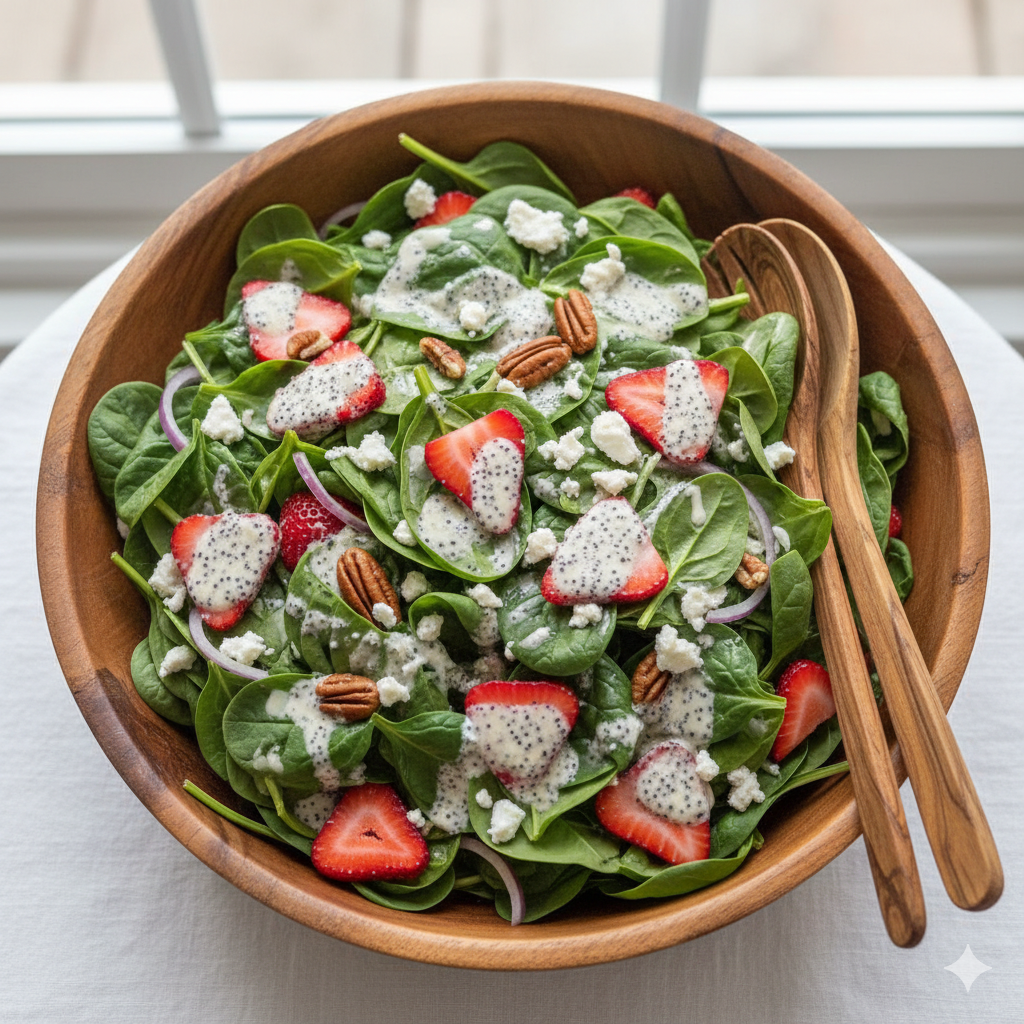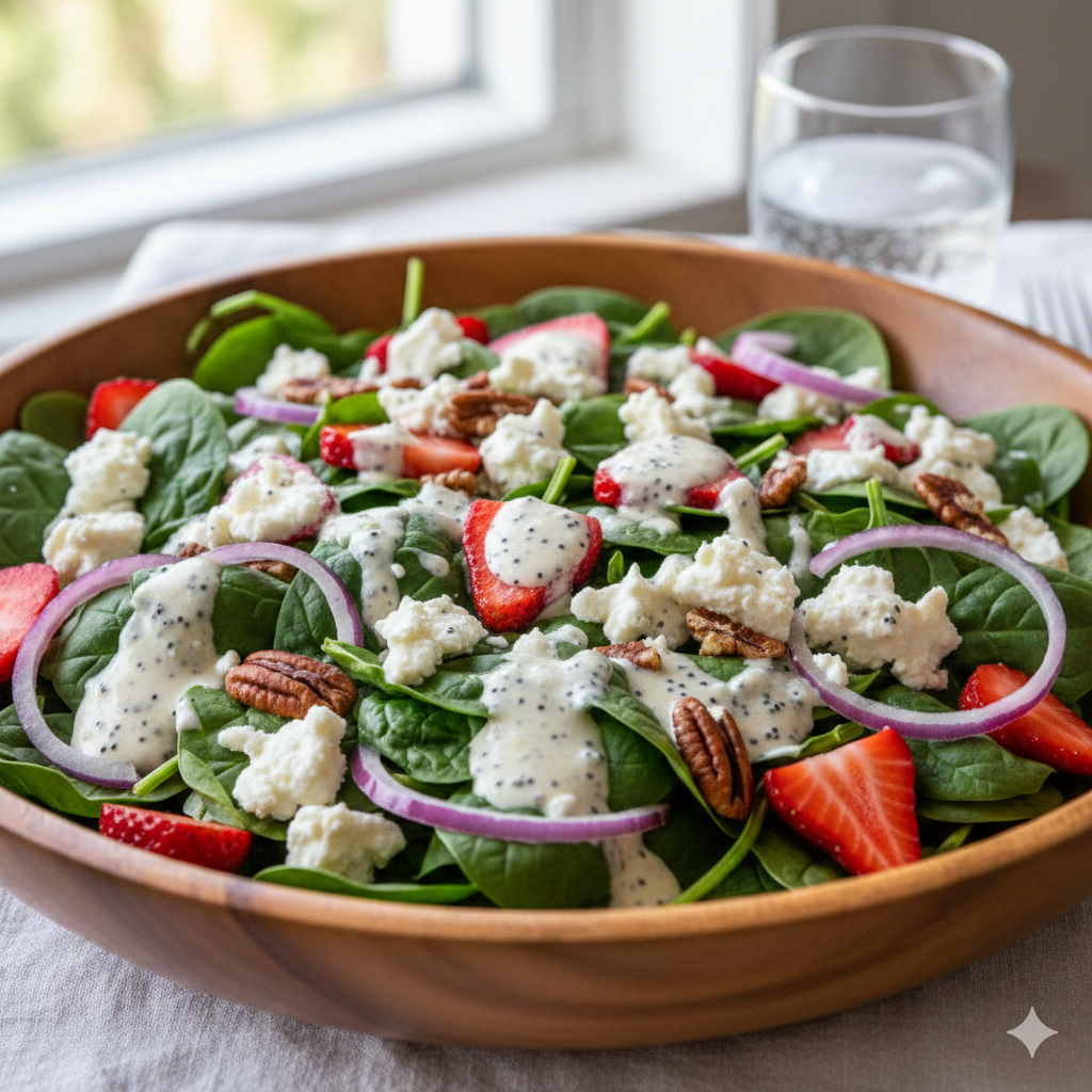 Health Benefits: This salad is a powerhouse of Vitamin C from the strawberries and Vitamin K/Folate from the spinach. The poppyseeds provide a surprising amount of manganese and calcium.