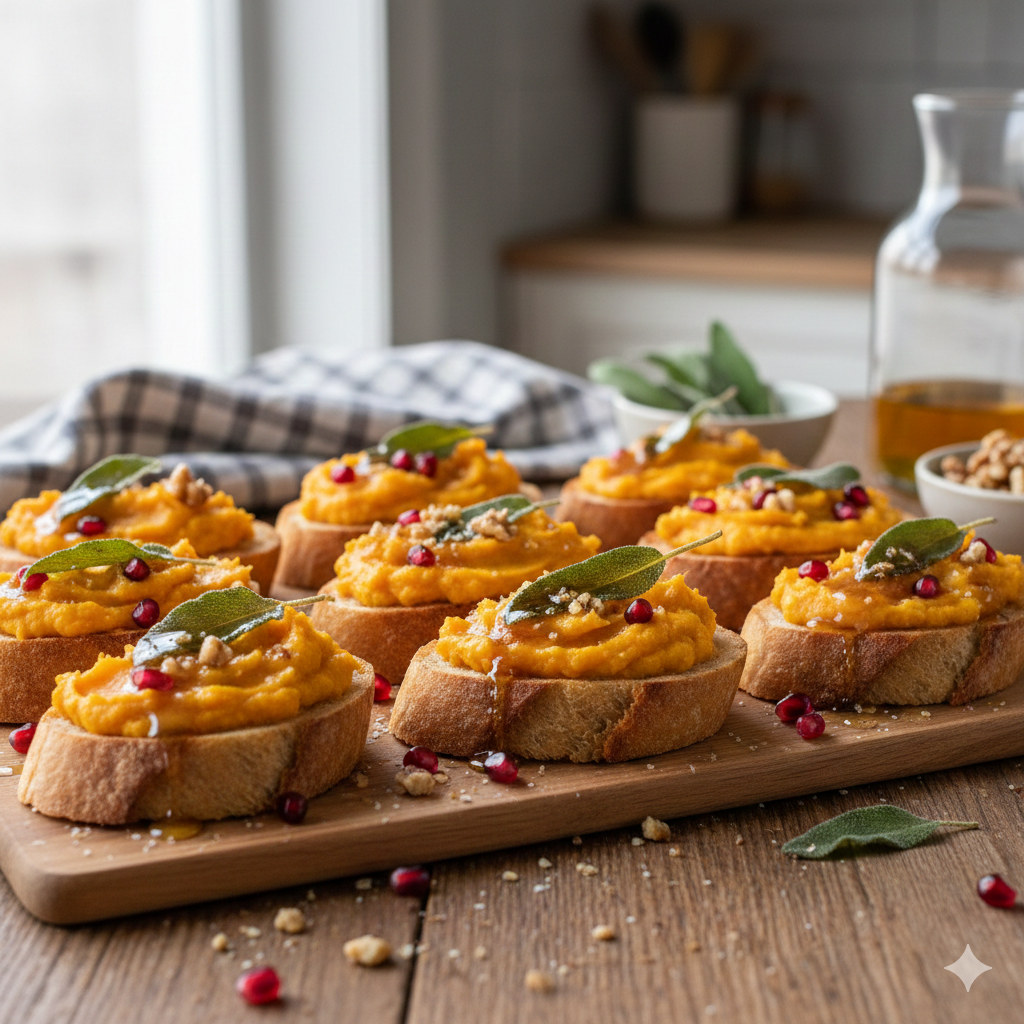 The origin of the “crostini”—meaning “little toasts” in Italian—dates back to the medieval era when Italian peasants used slices of bread as makeshift plates. While the vessels have remained humble, the toppings have evolved into a canvas for culinary artistry. This specific rendition marries the rustic charm of the Italian countryside with the deep, nutty sweetness of roasted squash, a staple of North American fall harvests.