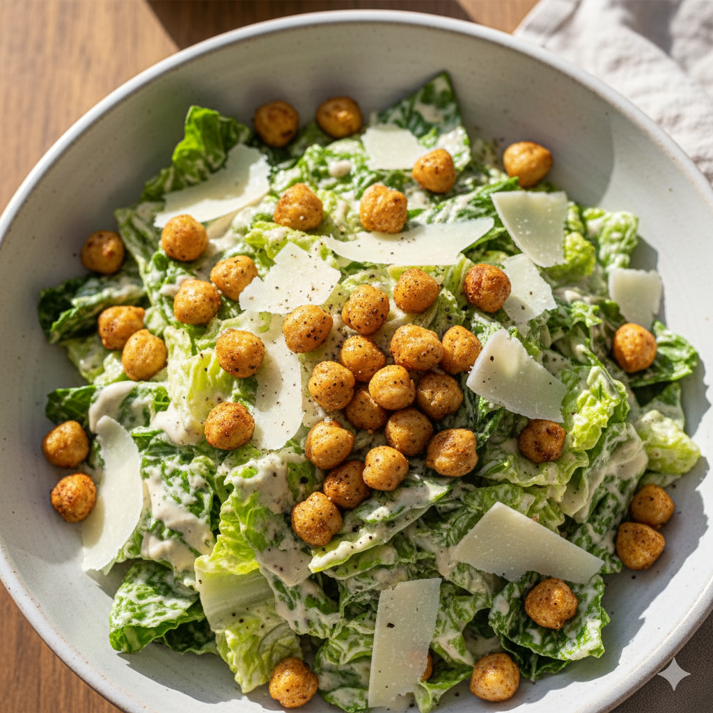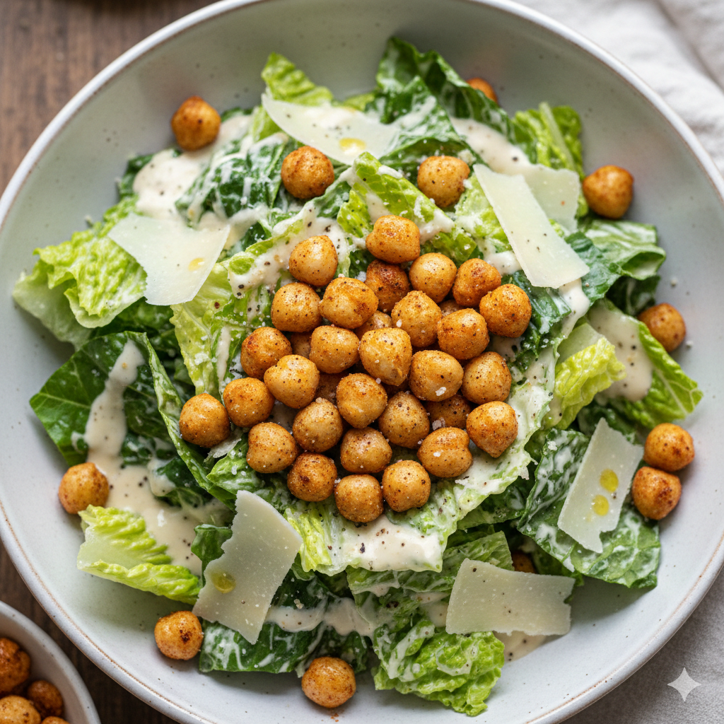 The Caesar salad is perhaps the most iconic “table-side” dish in culinary history, traditionally a theatrical performance of emulsified egg yolks, pungent anchovies, and crisp romaine. However, as our palates and dietary needs evolve, so must our classics. This rendition—Creamy Caesar Salad with Roasted Chickpea Croutons—reimagines the heavy, bread-laden original as a vibrant, nutrient-dense powerhouse.
