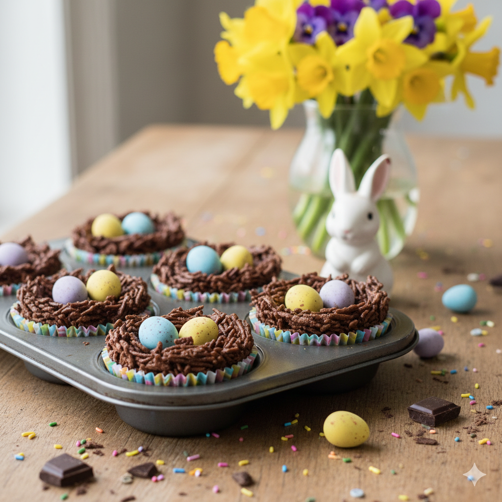 • Plating: Arrange the nests on a bed of shredded green paper (to look like grass) inside a wicker Easter basket.