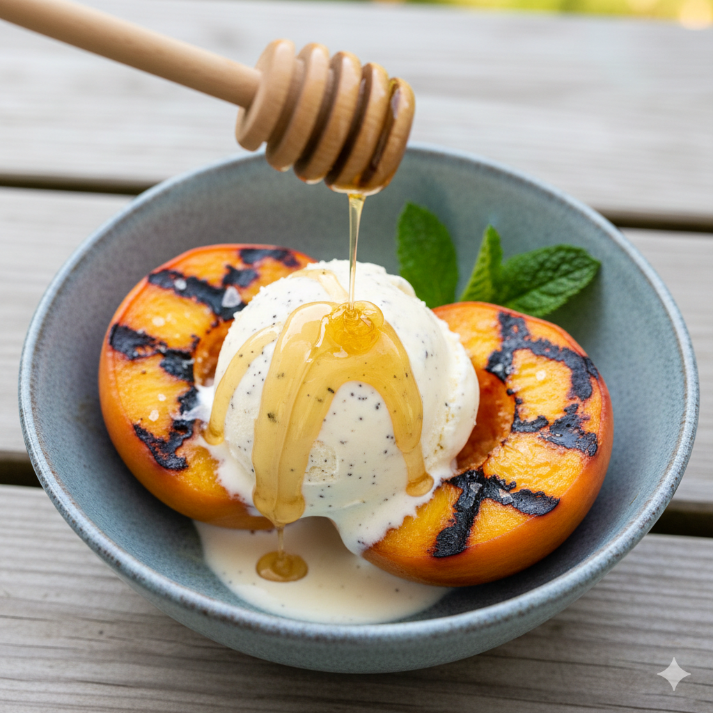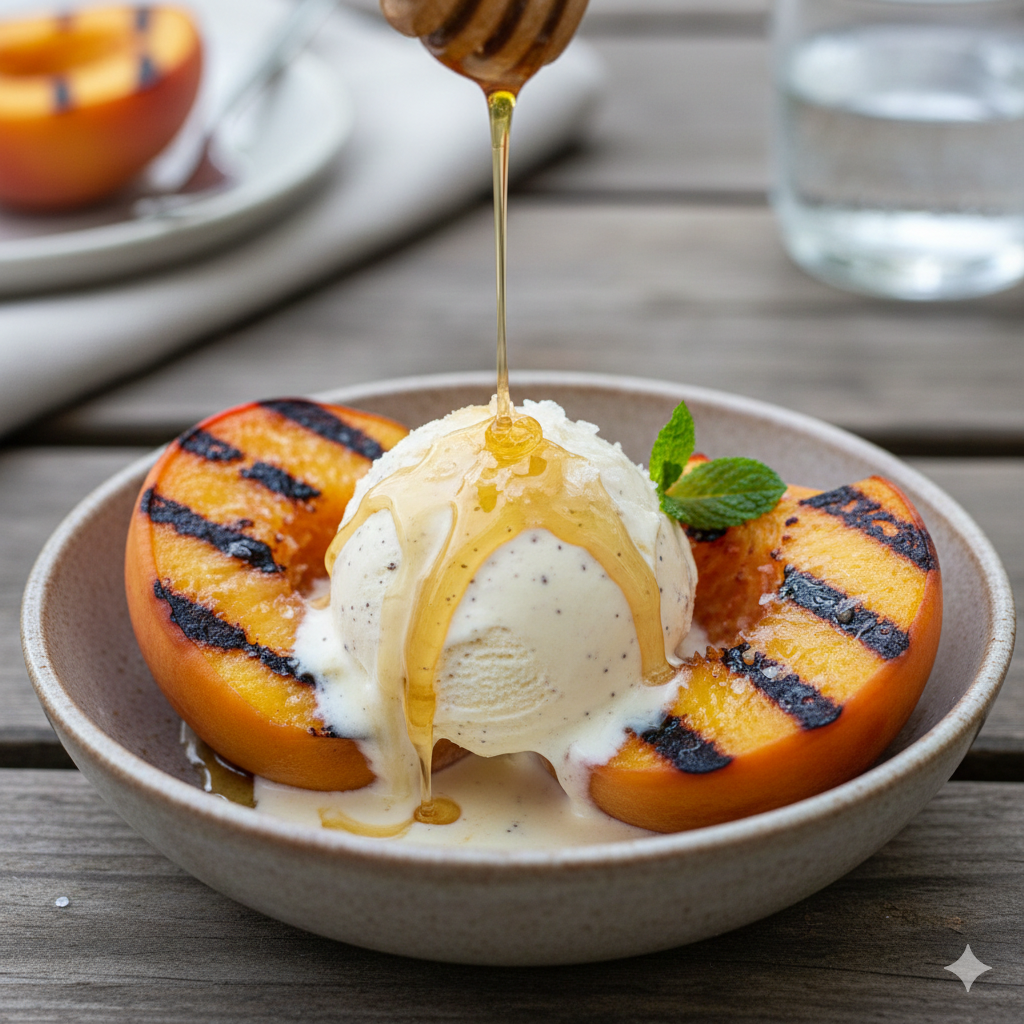 Grilled Peaches with Vanilla Ice Cream and Honey is more than just a recipe; it is a celebration of seasonal simplicity. The practice of grilling fruit likely stems from Mediterranean and Southern American traditions, where the post-dinner embers of a coal fire were never allowed to go to waste. By placing a halved peach onto a hot grate, you aren’t just heating it; you are triggering the Maillard reaction. The natural sugars (fructose and glucose) caramelize, creating a deep, smoky sweetness that contrasts beautifully with the fruit’s inherent acidity.