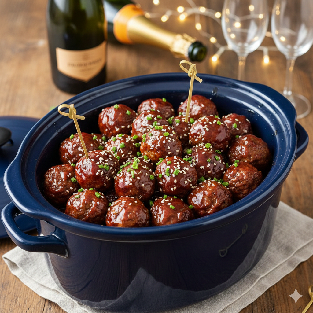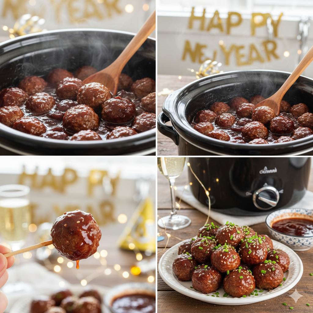 The beauty of this recipe lies in its transformation. As the meatballs bathe in the slow cooker, the sugars in the grape jelly caramelize, while the vinegar and spices in the chili sauce provide a zesty backbone. By the time the clock strikes midnight, you aren’t just serving a snack; you’re serving a piece of party history. Whether you are hosting a black-tie gala or a cozy pajama countdown, these meatballs are the low-maintenance, high-reward centerpiece your celebration deserves.